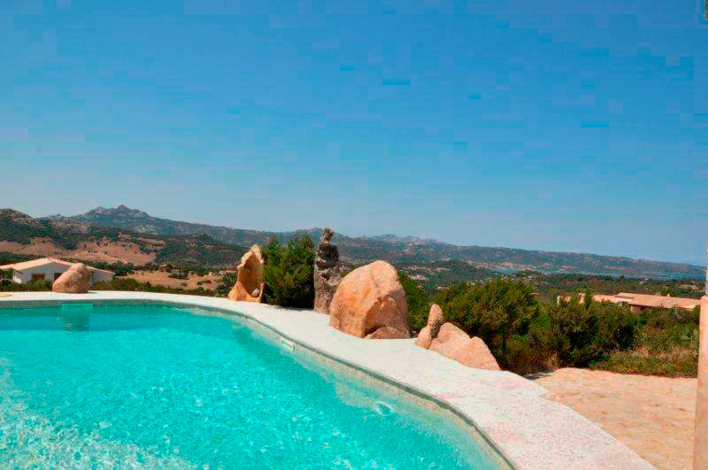 Villa Suaredda steht bei Baia Sardinia (Costa Smeralda, Nordostsardinien) in ruhiger Hanglage. Die freistehende Villa hat einen eleganten Pool, sowie eine Veranda mit tollem Meer- und Landschaftsblick, außerdem eine kleine Dépendance mit zweiter Küche, Schlafzimmer und Bad.