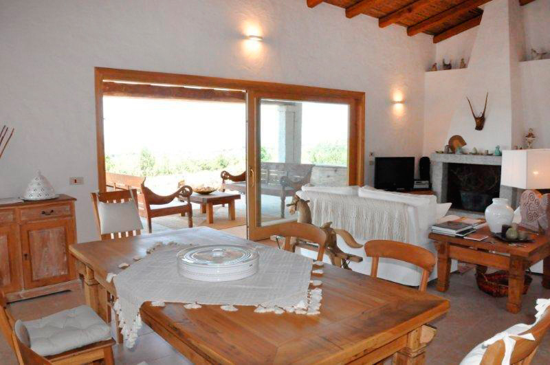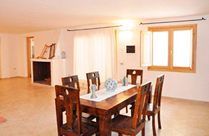 Villa Suaredda - der Soggiorno mit großem Esstisch und Ausgang zur Terrasse