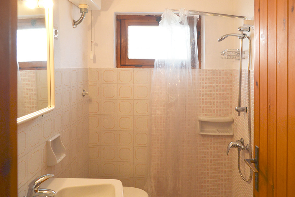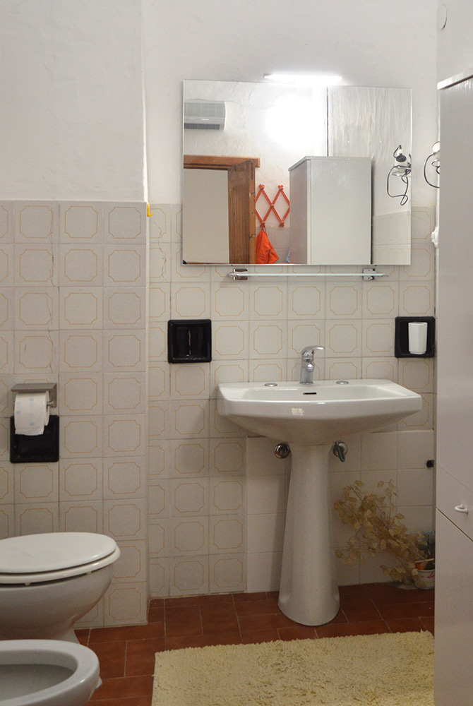 Casa Sussena - Das Badezimmer im Erdgeschoss hat eine Dusche, eine Toilette und ein Waschbecken, also kein Bidet.