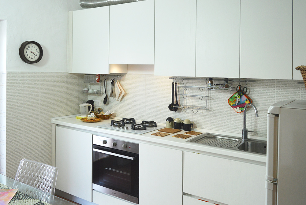 Casa Sussena - Die Küche verfügt über einen 4-Flammen-Herd, einen elektrischen Backofen, einen Geschirrspüler und eine Waschmaschine, sowie eine Mikrowelle und einen Kühlschrank mit Gefrierfach.