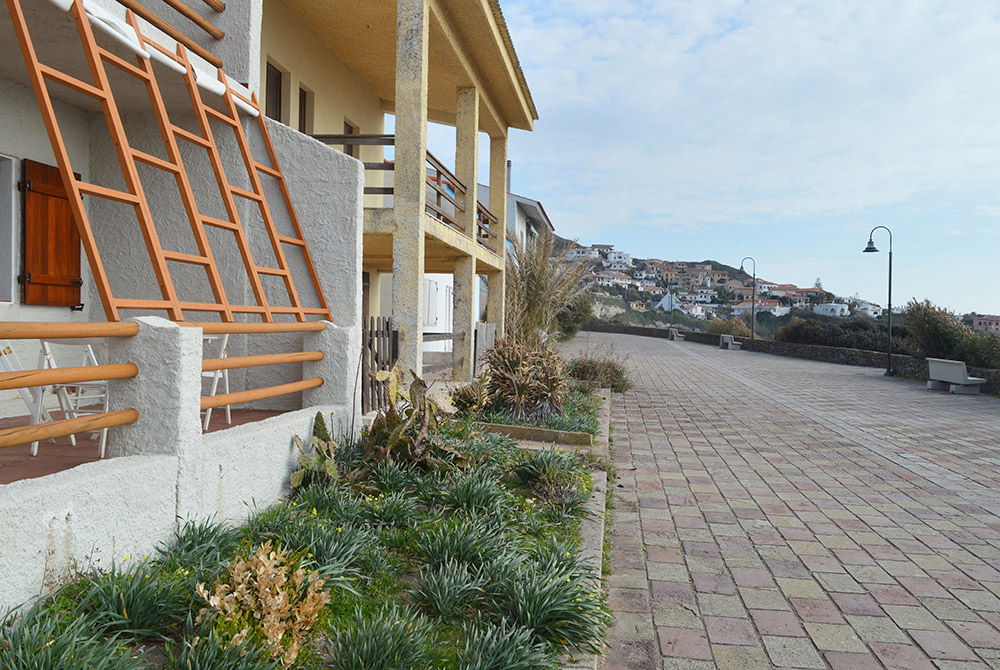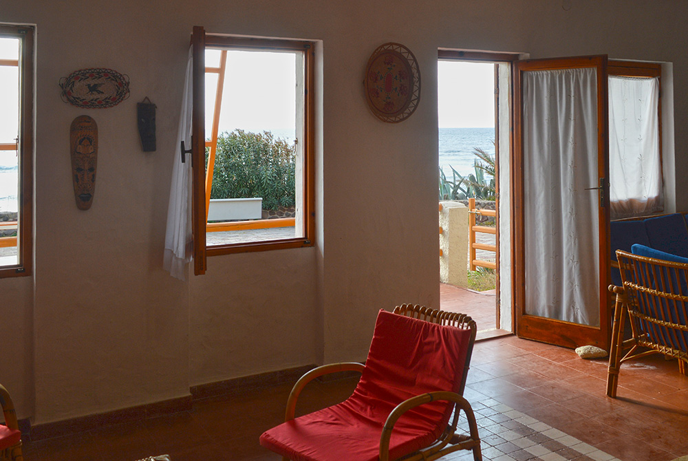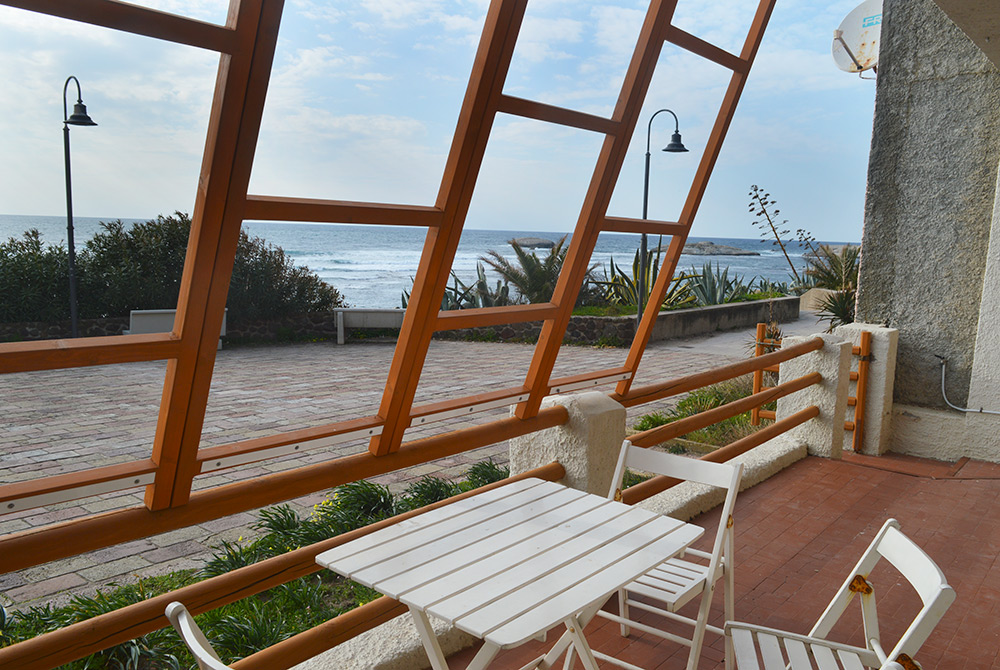 Örtchens S'Archittu. Im Erdgeschoss ein Wohnzimmer, Küche, Bad und einen Hof hinter dem Haus. Ein Highlight ist die Terrasse mit direktem Blick auf das Meer.