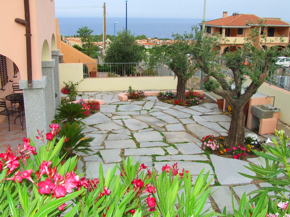 eigerichtetes schönes Apartment im EG eines sehr gepflegten freistehenden Hauses in Cala Gonone. Das Haus ist umgeben von einem mit Natursteinplatten ausgelegten Garten mit einem Barbecue, Olivenbäumen und Blumenbeeten. Die Wohnung hat zwei Schlafzimmer, eine große, klimatisierte Wohnküche ein modernes Bad und zwei überdachte Veranden.