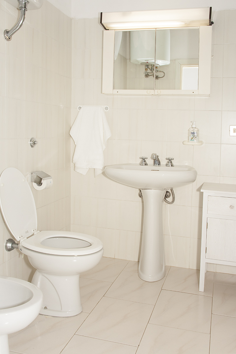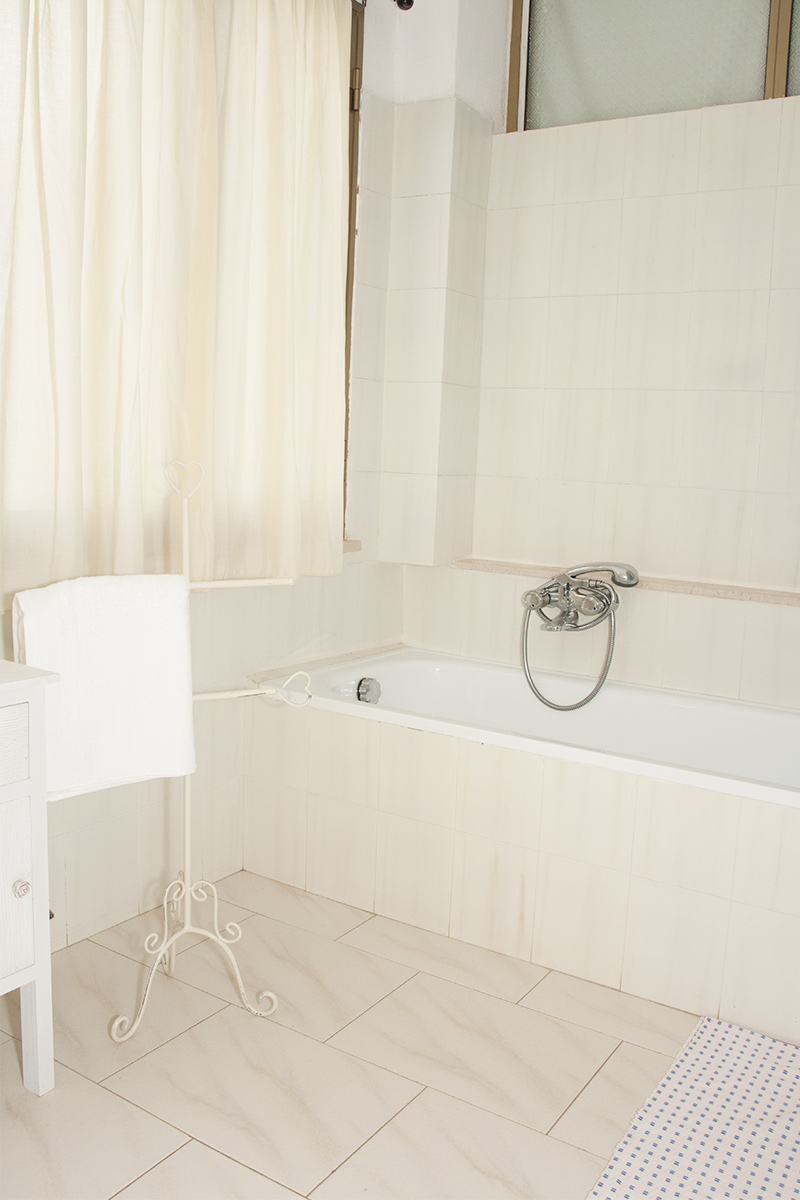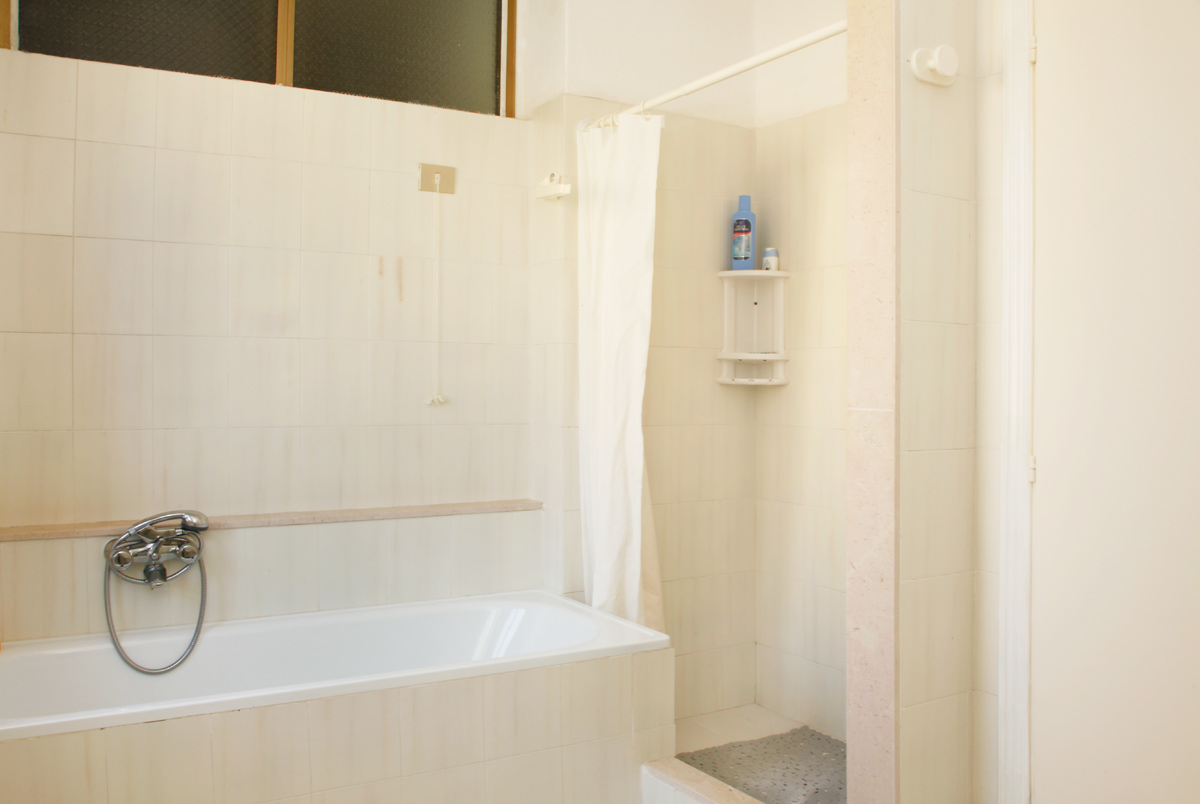 Casa Zava - das Bad, vollverfliest, mit Duschkabine und Badewanne ...