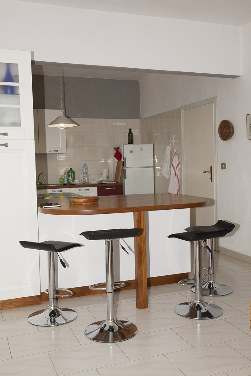 die kleine Esstheke verbindet die Küche mit dem Soggiorno. So siehts von der Küchenseite aus