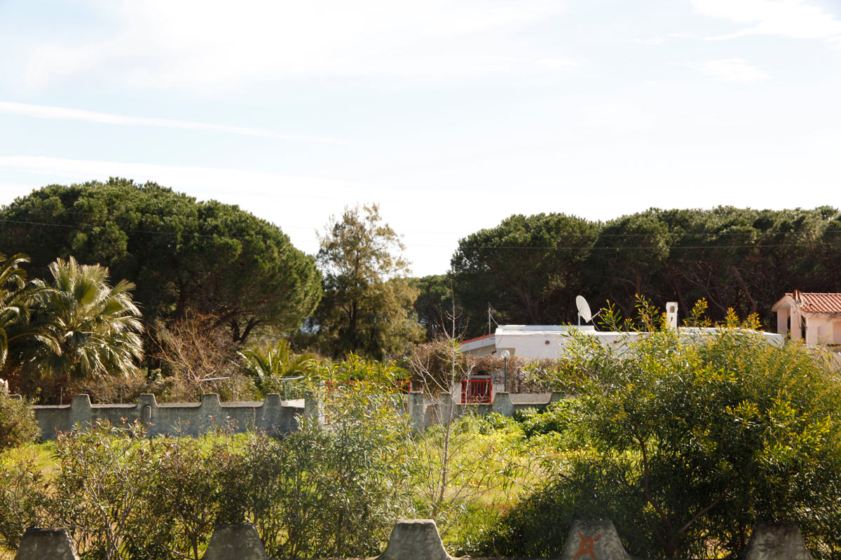 Der Blick von der Terrasse - hinter den Pinien liegt gleich der Strand.